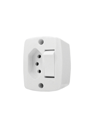 Interruptor Sobrepor Retangular 1 Tecla Simples + 1 Tomada 2P + T 20A 250V